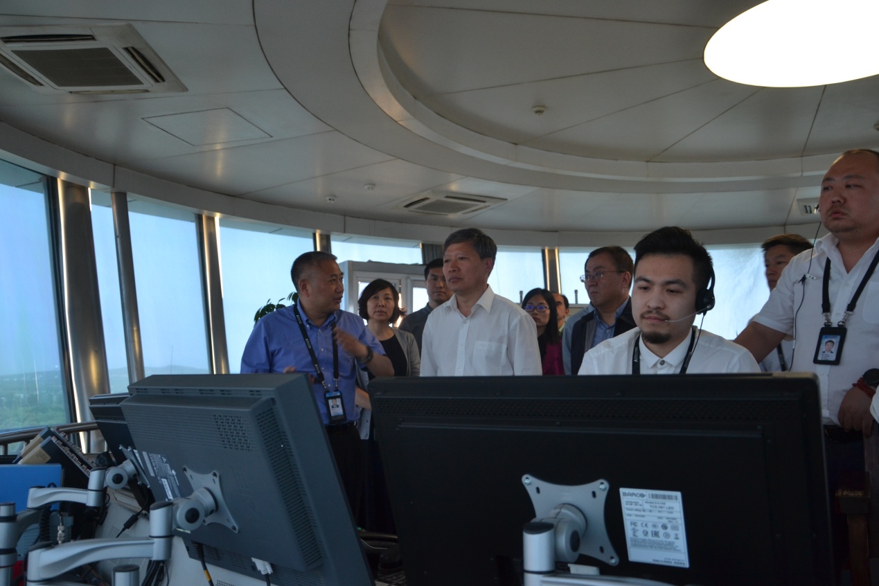孙小平校长、刘岩松院长一行参观了机场塔台、区管中心和发射台后勤基地。