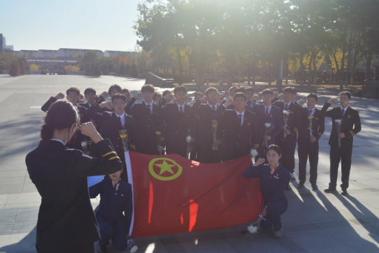 在烈士纪念碑前学生党员一起重温了入党誓词,共同表达了对先烈遗志继承之情。